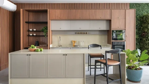 3. Funcionalidade e Estética: Além dos painéis arredondados, a Coletânea Formas da Vida traz a novidade das portas Shaker para cozinhas. Elas combinam um design clássico com uma funcionalidade moderna, oferecendo uma solução prática e elegante para otimizar o espaço. Com linhas limpas e um apelo estético atemporal, são ideais para quem busca um estilo de moradia que prioriza tanto a funcionalidade quanto a beleza. Disponíveis em uma variedade de materiais e acabamentos, elas se adaptam a diferentes estilos de cozinha, proporcionando um ambiente que é ao mesmo tempo acolhedor e eficiente.