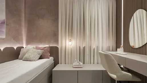 1. Painéis Arredondados: Uma das tendências em destaque são os painéis arredondados, que combinam sofisticação e versatilidade. Eles são ideais para compor ambientes mais fluidos e acolhedores, suavizando a rigidez das linhas retas. Em salas de estar, esses painéis conferem um toque orgânico, enquanto em quartos, funcionam como cabeceiras que envolvem o ambiente. Em cozinhas e áreas de convivência, ajudam a promover integração e harmonia, suavizando as transições entre os espaços.