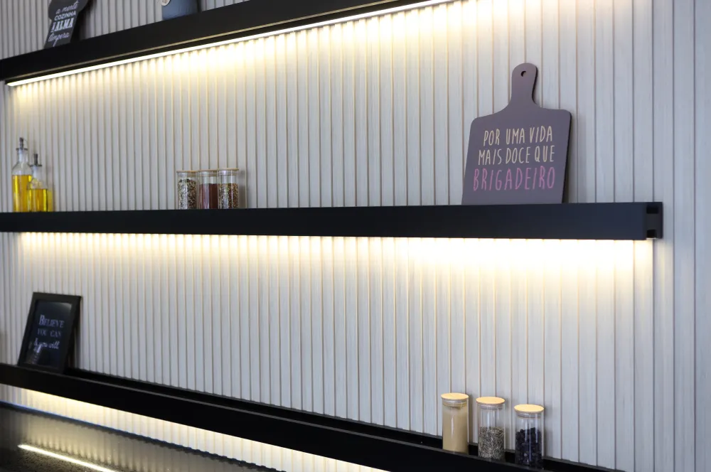 Em uma sala de estar, por exemplo, um canto pode ser utilizado para exibir livros ou objetos decorativos, enquanto na cozinha, prateleiras podem armazenar temperos e utensílios.