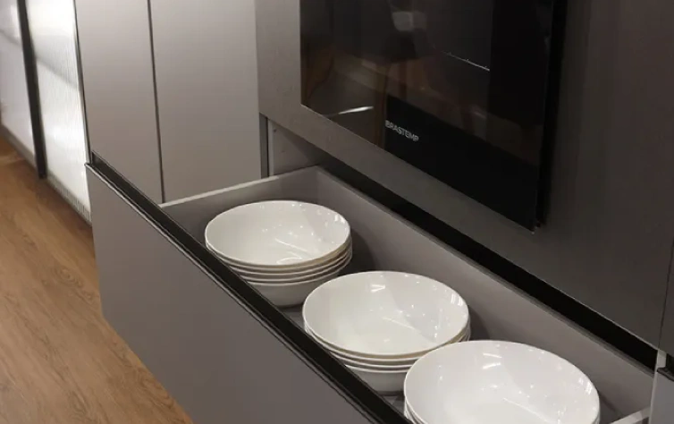 Considere prateleiras deslizantes ou gavetas internas para facilitar o acesso a utensílios e mantimentos.